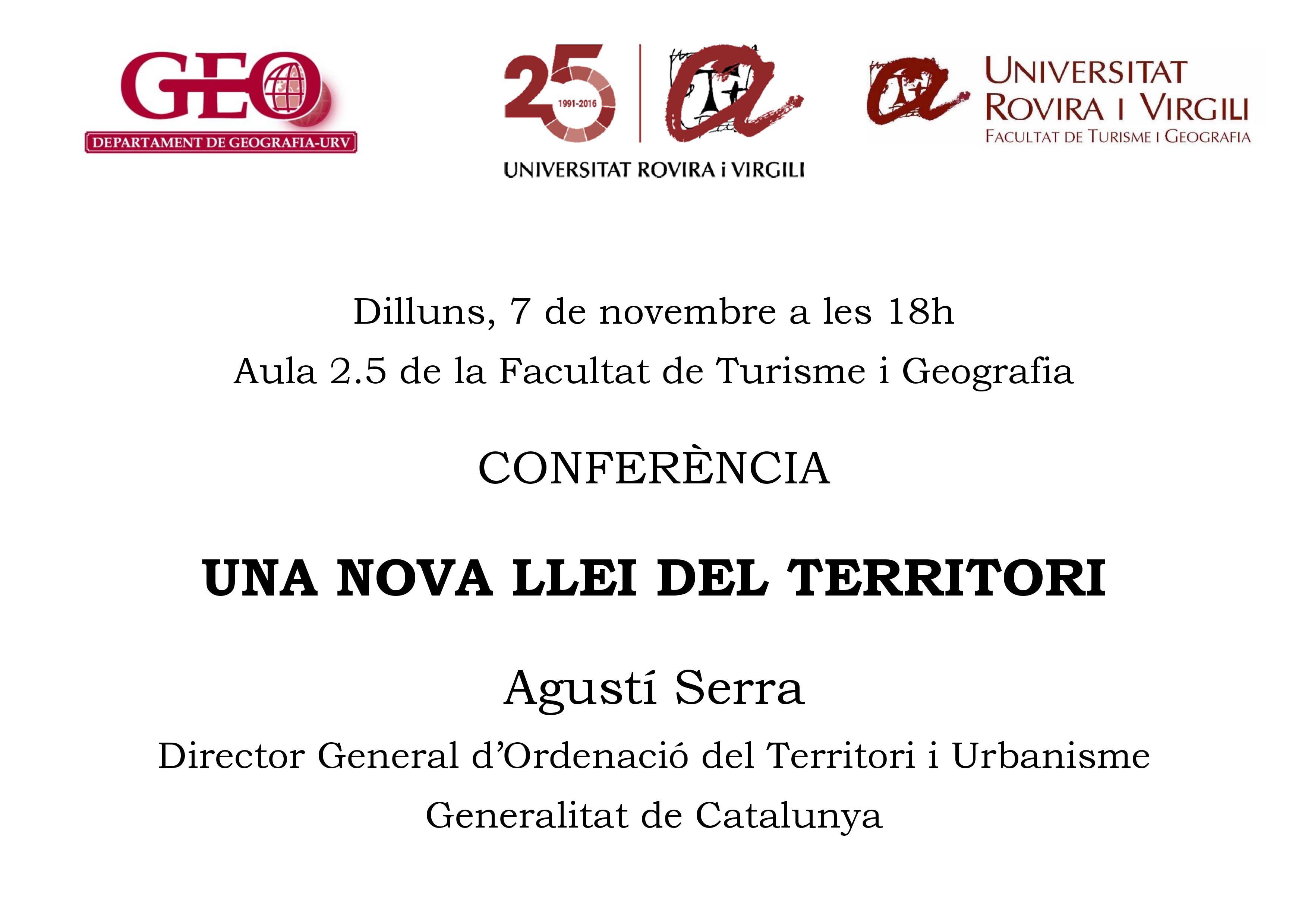La conferencia irá a cargo del Sr. Agustín Serra, Director General de Ordenación del Territorio y Urbanismo de la Generalitat de Catalunya.