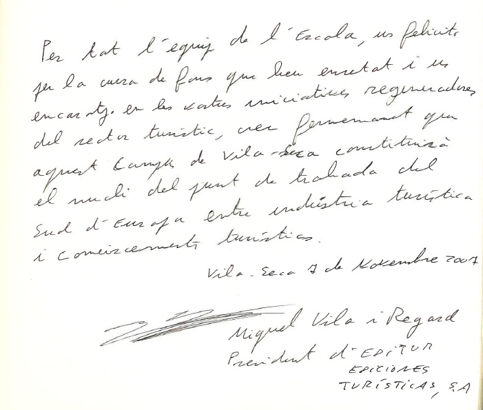La lliçó inaugural "Turisme, un sector adolescent davant el canvi d'era" va anar a càrrec del Sr. Miquel Vila Regard, president i editor de EDITUR, Ediciones Turísticas.