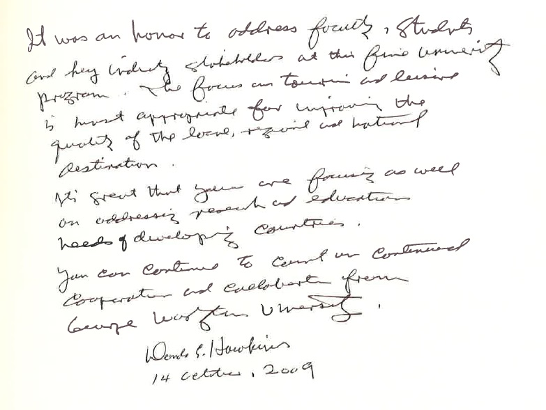 La lliçó inaugural "Developing a Sense of Place for Tourism Destinations - The Geotourism Approach" va anar a càrrec del Dr. Don Hawkins, Professor Eisenhower de Política Turística de l'Escola d'Empresarials de la Universitat George Washington.